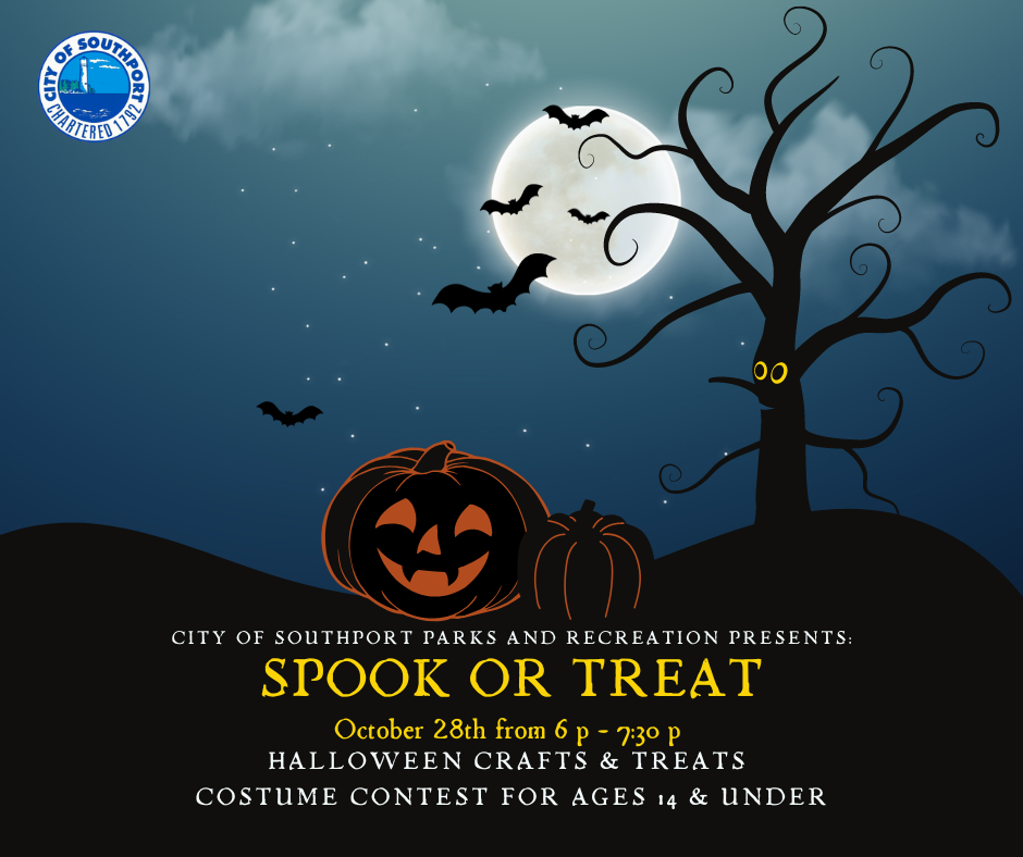 Come out on October 28th to the Southport Parks and Recreation office for a night of spooks, treats, and lots of fun! There will be Halloween crafts, various treats to choose from, and a Halloween costume contest for kids 14 and under.