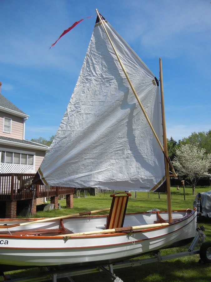 All else is Douglas Fir including the spars. The rudder and daggerboard are beautiful lamination of various hardwoods and the entire package comes with the attached aluminum trailer.